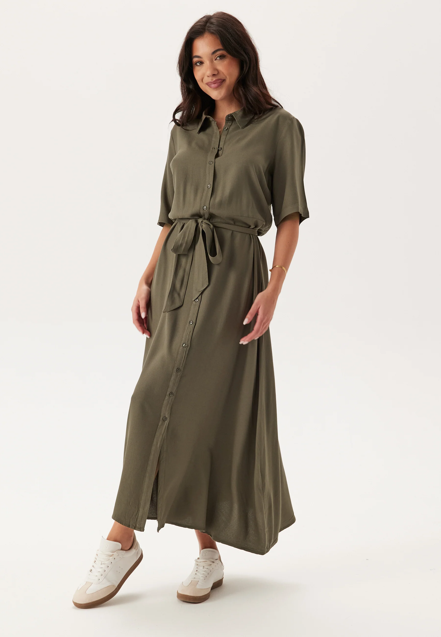 Viscose Belted Shirt Dress